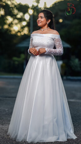 Flared linear off shoulder Wedding gown
